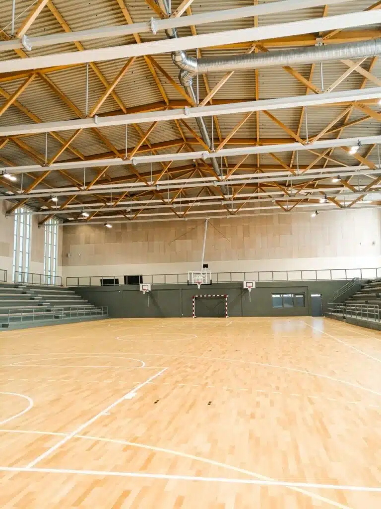 Conçue pour accueillir des disciplines telles que le handball, le volley-ball ou le basket-ball, la salle omnisport bénéficie d’une étude d’éclairage précise.